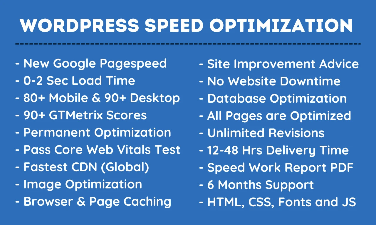 | ✅ Google Pagespeed Scores 50+ for Mobile and 70+ for Desktop ✅ 2-6 Sec Load Time ✅ 1 Month Support |