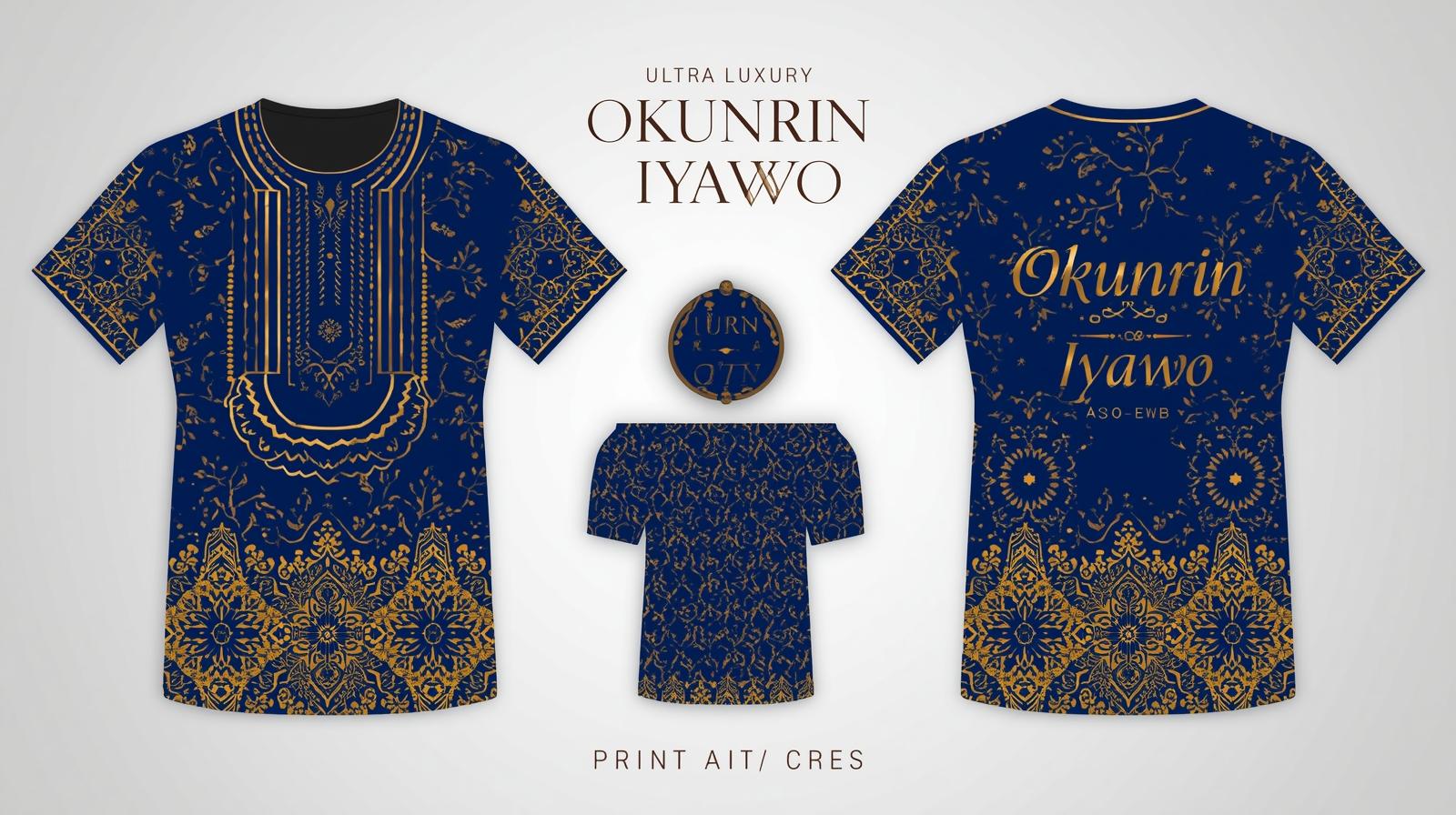 Custom Aso-ebi patterns, beadwork motifs, crowns, and cultural symbols